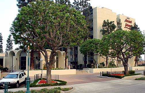 Restaurant at street level facing Harbor Boulevard. The restaurant