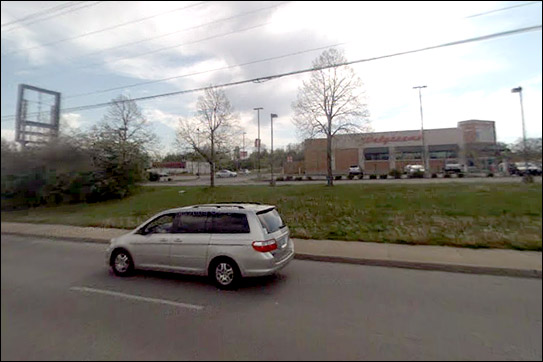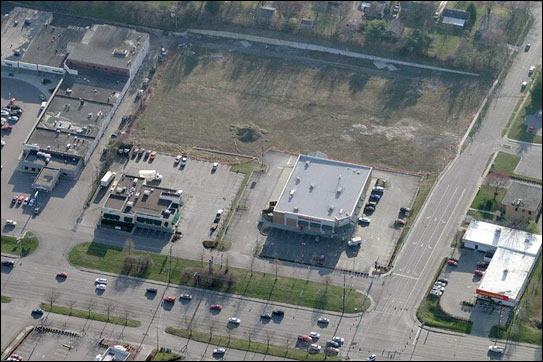 Aerial view from Bing Maps with O'Charley's and Walgreens dominating