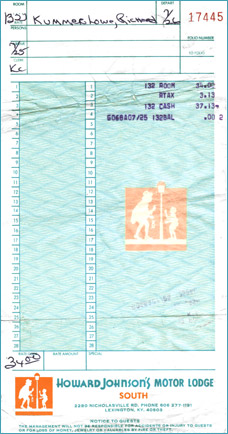 Receipt from an overnight. I spent a night at Lexington-South