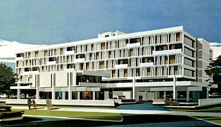 glass elevator." It featured a rooftop enclosed swimming