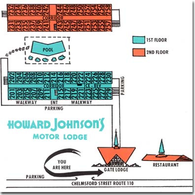 The property layout shown above indicates that it was constructed in the classic Howard Johnson's configuration.