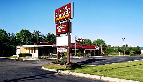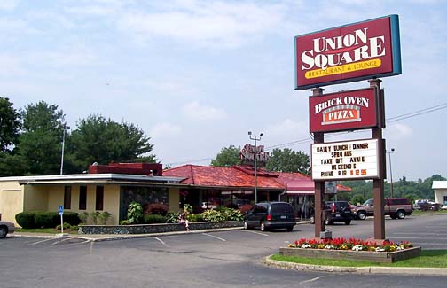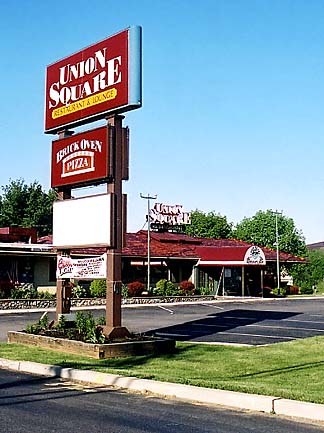 behind the Union Square sign.