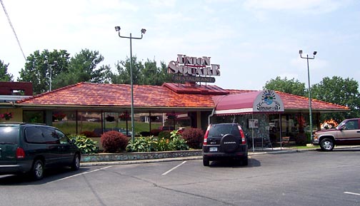 of the restaurant's back side showing the cupola's fins hidden