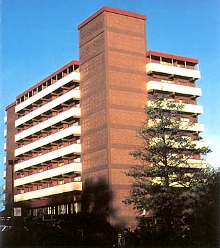 The 8-story Motor Lodge featured 119 "luxurious" rooms and the site was convenient to the University of Pittsburgh.