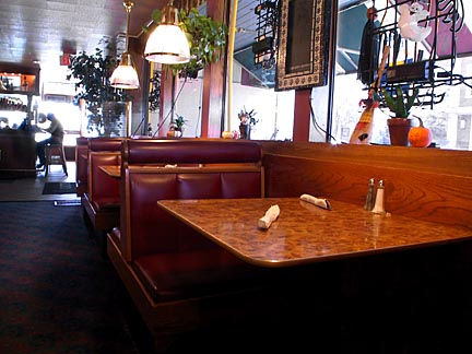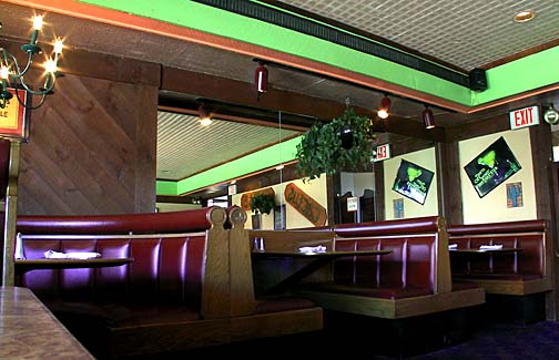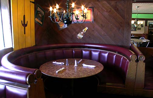 Booths, tables and many chairs as well as lamps all from Landmark Supply remained in use throughout the current restaurant.