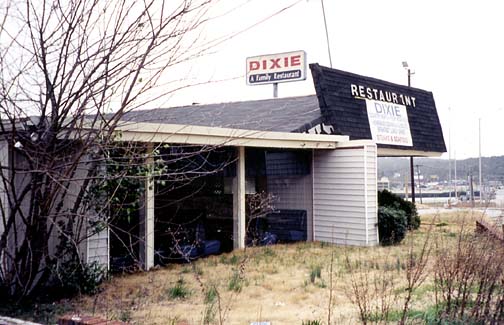 that the roadsign's supports once held a Howard Johnson's